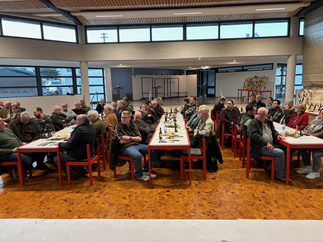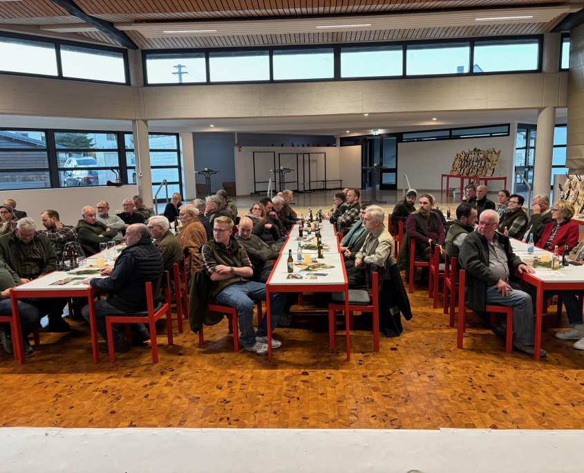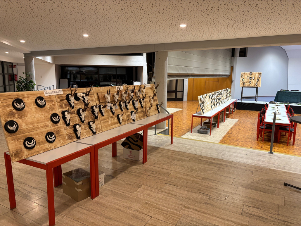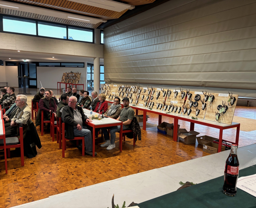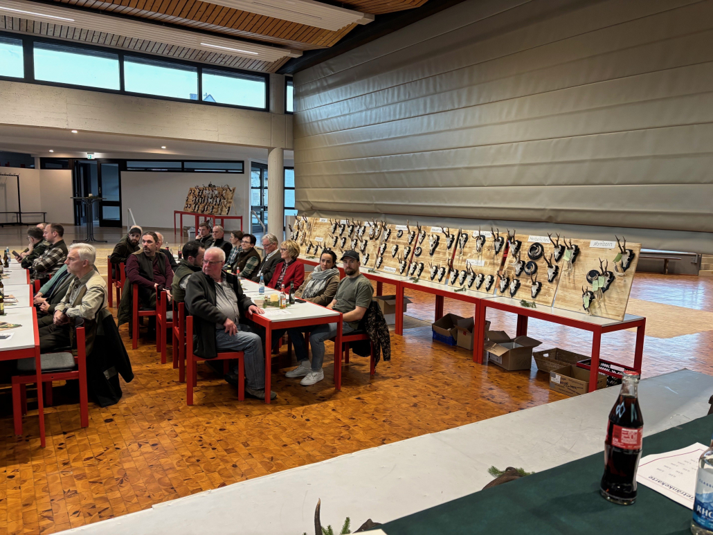 Wir bedanken uns, dass so viele von Euch an der Hegeringversammlung 2026 teilgenommen haben. Es konnten von 15 Revieren Damm/Hirsch-, Keiler- und Bocktrophäen ausgestellt und bewertet werden.