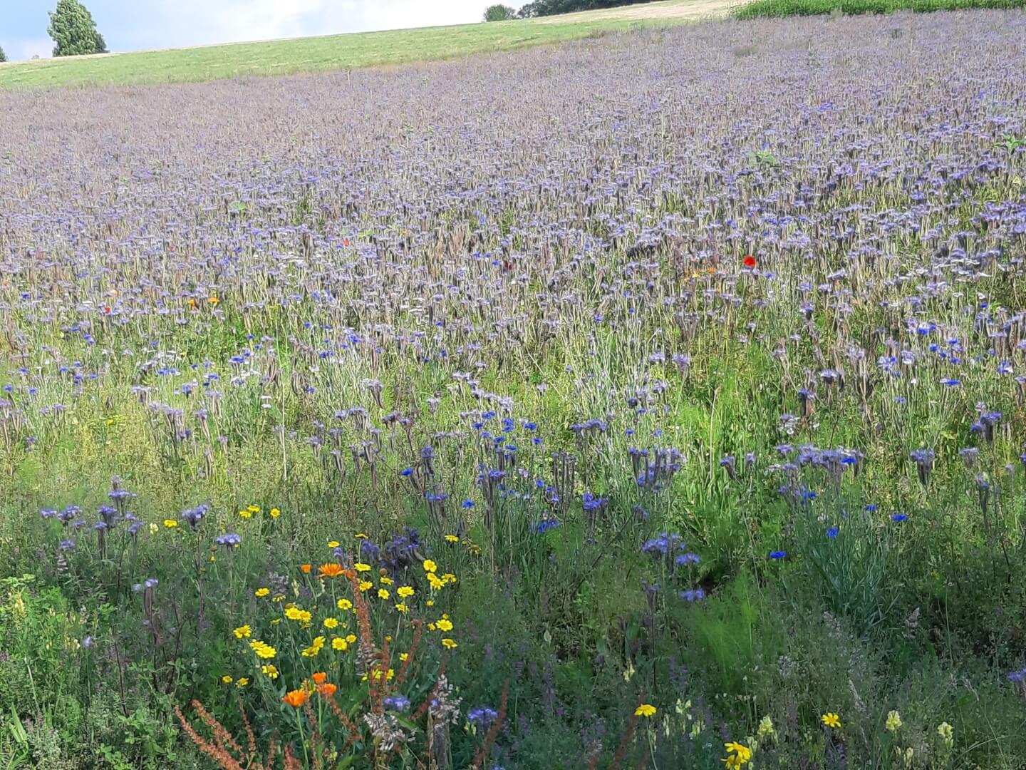 In unserem Hegering Hachenburg konnten wir den Landwirt Dietmar Weyer aus Marzhausen für dieses Programm gewinnen. Hinzu kam, dass der örtliche Jagdpächter die restlichen 40 % der Saatgutkosten übernahm. In der Gemarkung Marzhausen entstand eine „mehrjährige Honigbrache“ von 1 ha (10.000 Quadratmeter) und in Heimborn auf einer vom ihm bewirtschaften Fläche von 2,7 ha. Diese Fläche wird für 3 Jahre aus der Bewirtschaftung herausgenommen. Die Saatgutmischung besteht aus 30 verschiedenen Kräutern und gewährleistet ein langanhaltendes Blühangebot für Insekten, Vögel und Niederwild. Ein gelungenes Beispiel der Zusammenarbeit zwischen Landwirt und Jäger für unsere Umwelt.